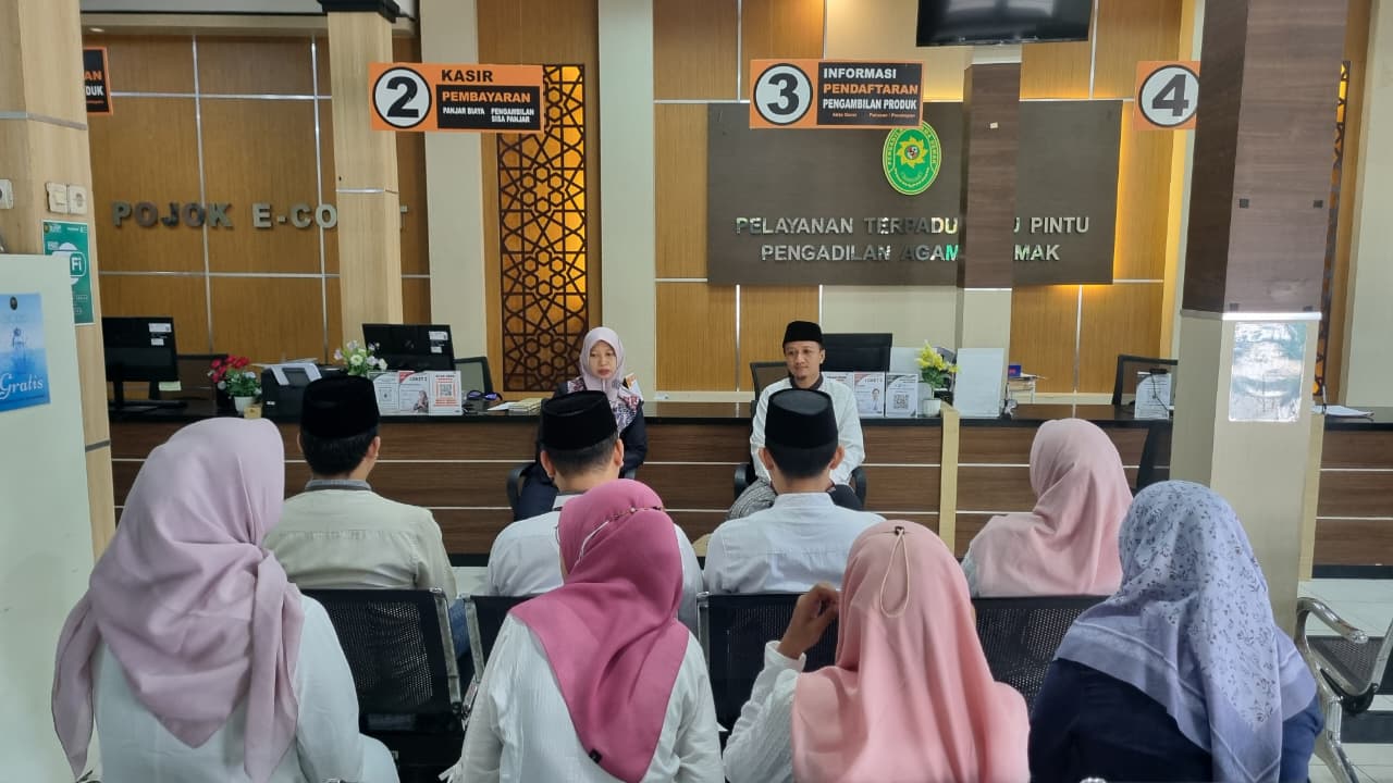Demak, 22 Oktober 2025 – Pengadilan Agama Demak melaksanakan kegiatan rutin Briefing Rabu Pagi pada Rabu (22/10/2025) pukul 08.00 WIB bertempat di Ruang PTSP Pengadilan Agama Demak. Kegiatan ini diikuti oleh seluruh petugas Pelayanan Terpadu Satu Pintu (PTSP) dan petugas Pos Bantuan Hukum (Posbakum).