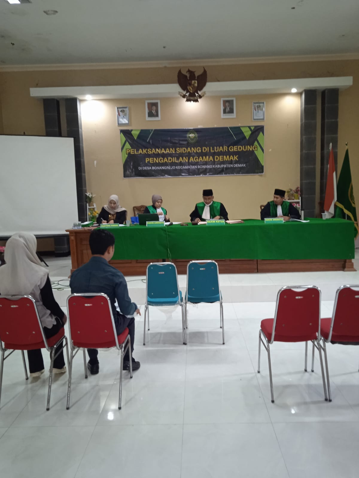 Pengadilan Agama Demak melaksanakan kegiatan Sidang di Luar Gedung Pengadilan pada Jum’at, 23 Januari 2026, mulai pukul 09.00 WIB, bertempat di Balai Desa Bonangrejo. Kegiatan ini merupakan wujud komitmen Pengadilan Agama Demak dalam mendekatkan layanan peradilan kepada masyarakat.