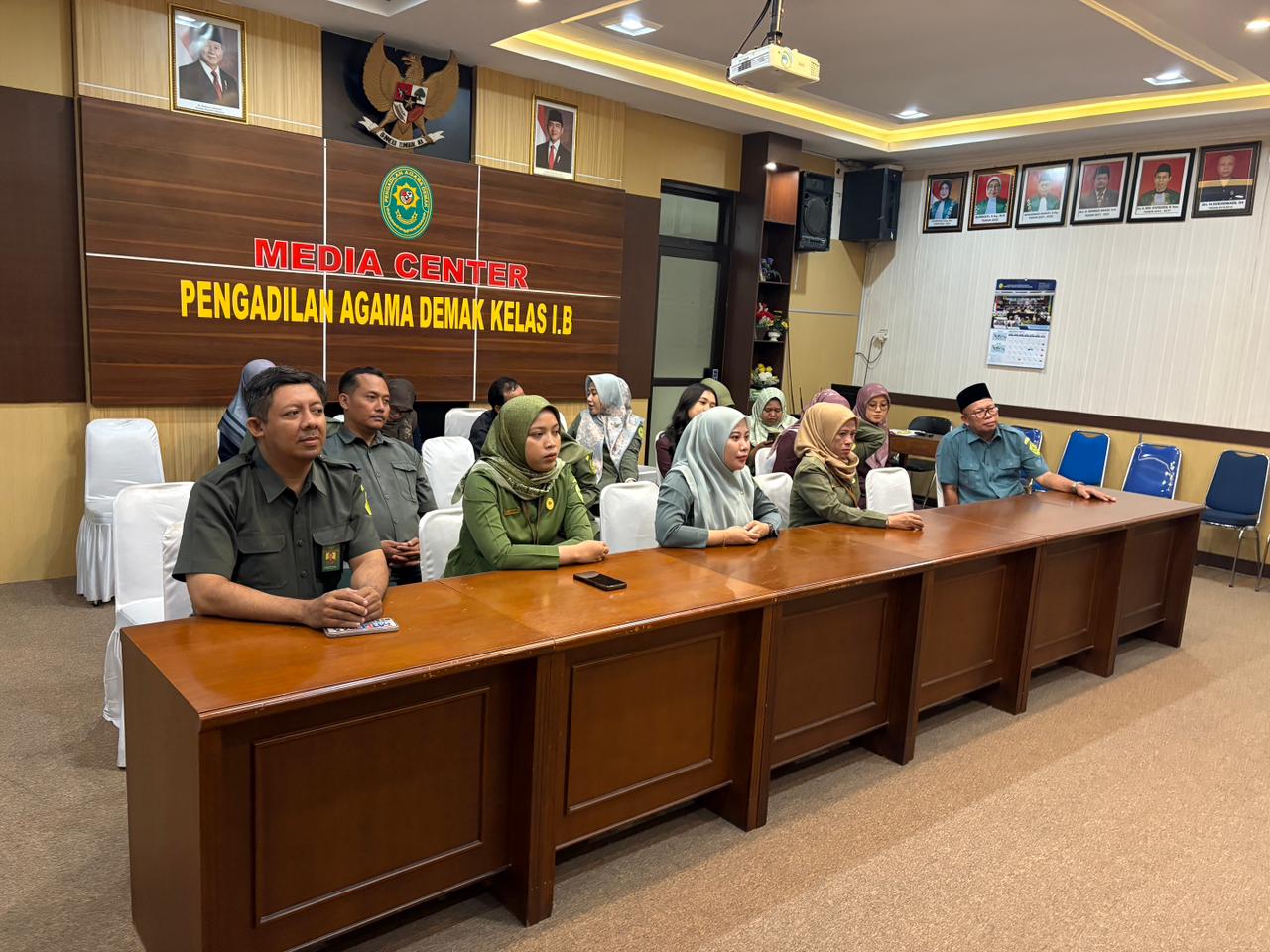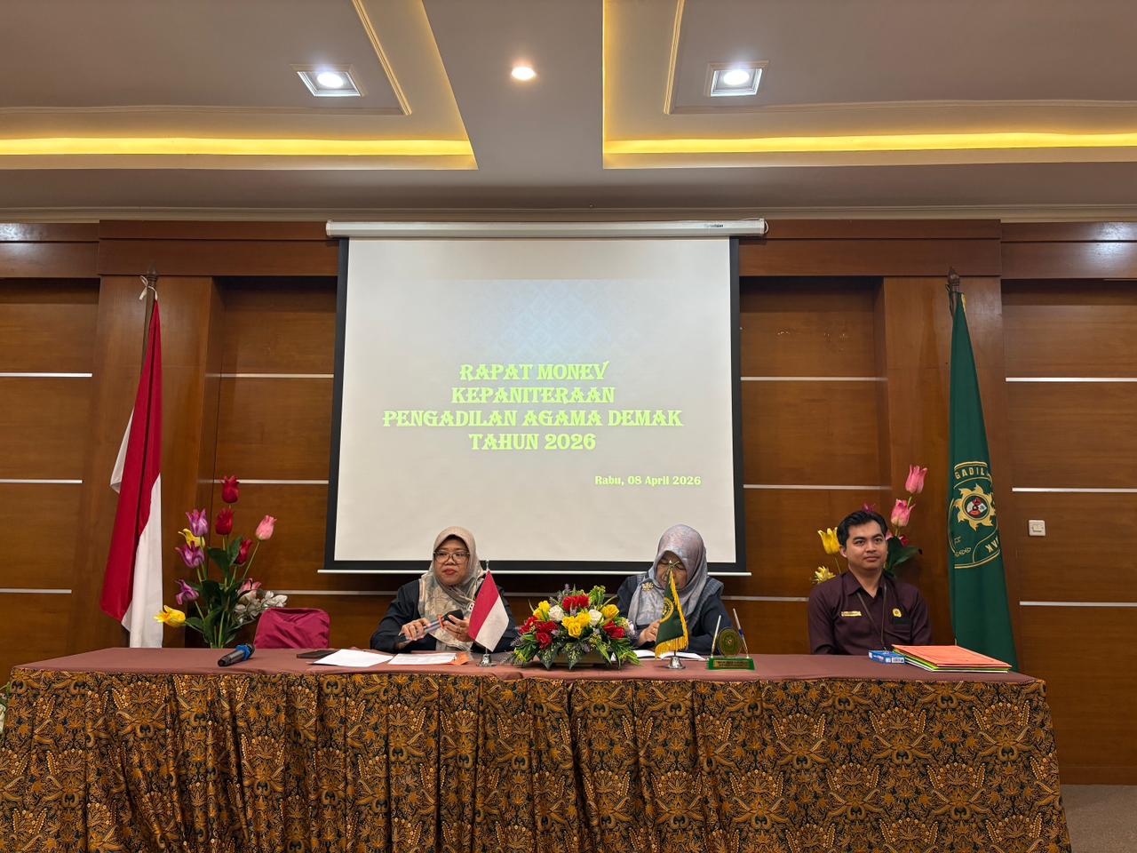 Demak, Rabu, 08 April 2026 – Pengadilan Agama Demak melaksanakan Rapat Monitoring dan Evaluasi (Monev) Kinerja Tim Kepaniteraan pada pukul 09.00 WIB, bertempat di Ruang Media Center Pengadilan Agama Demak.