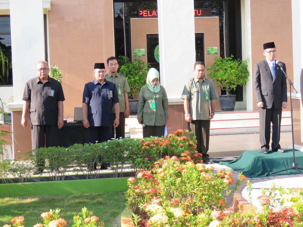 Selesai membacakan sambutan, Drs. Ali Irfan, S.H., M.H.berpesan agar seluruh aparatur Pengadilan Agama Demak untuk mendalami, menghayati dan mengamalkan nilai-nilai luhur Pancasila khususnya dalam pelayanan kepada masyarakat.