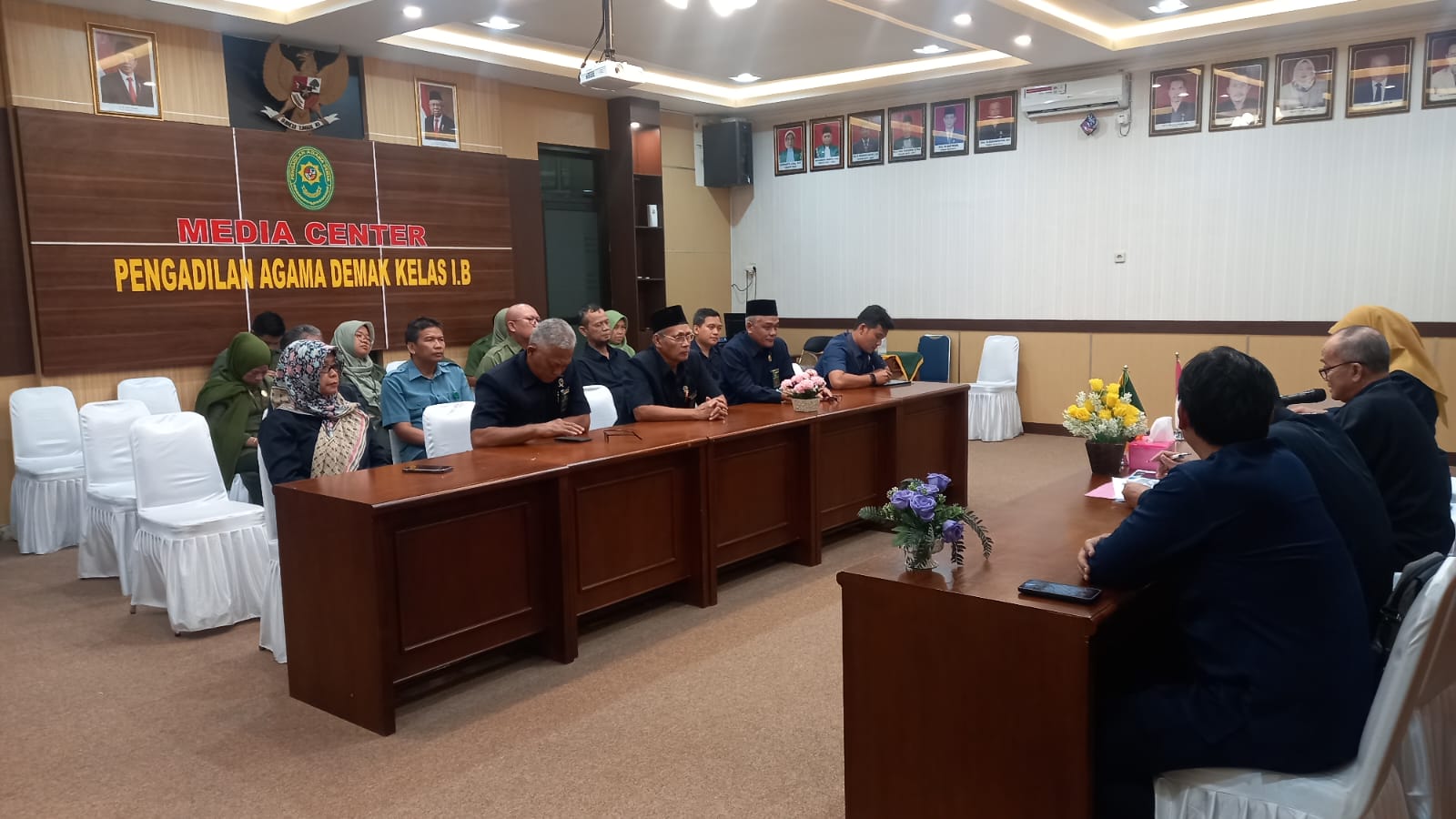 Demak, 04 Juli 2023 bertempat di Media Center Pengadilan Agama Demak telah diadakan pembinaan oleh Ketua PTA Semarang dengan didampingi oleh Panitera PTA Semarang kepada Pengadilan Agama Demak yang dihadiri oleh YM Nurbaeti, S.Ag., M.H selaku Ketua Pengadilan Agama Demak, didampingi oleh Panitera dan Seluruh Pegawai Pengadilan Agama Demak.