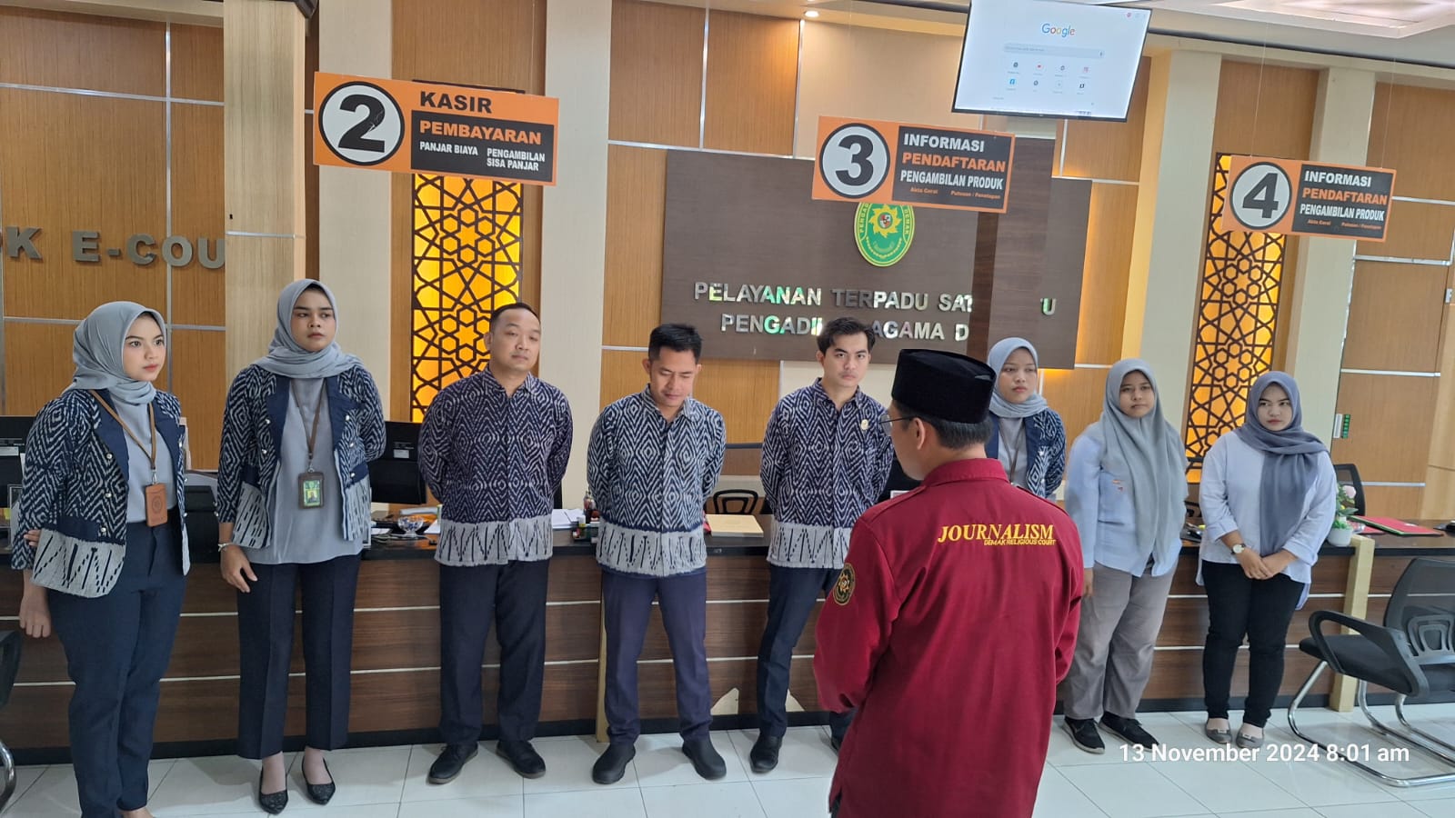 Pertama, Beliau menyampaikan apresiasi terhadap kerja keras dan kedisiplinan Petugas PTSP dalam memberikan pelayanan prima kepada masyarakat pencari keadilan. Beliau menyampaikan bahwa PTSP merupakan wajah dari sebuah pengadilan, baik dan buruk penilaian terhadap pengadilan erat kaitannya dengan pelayanan yang diberikan di PTPS.
