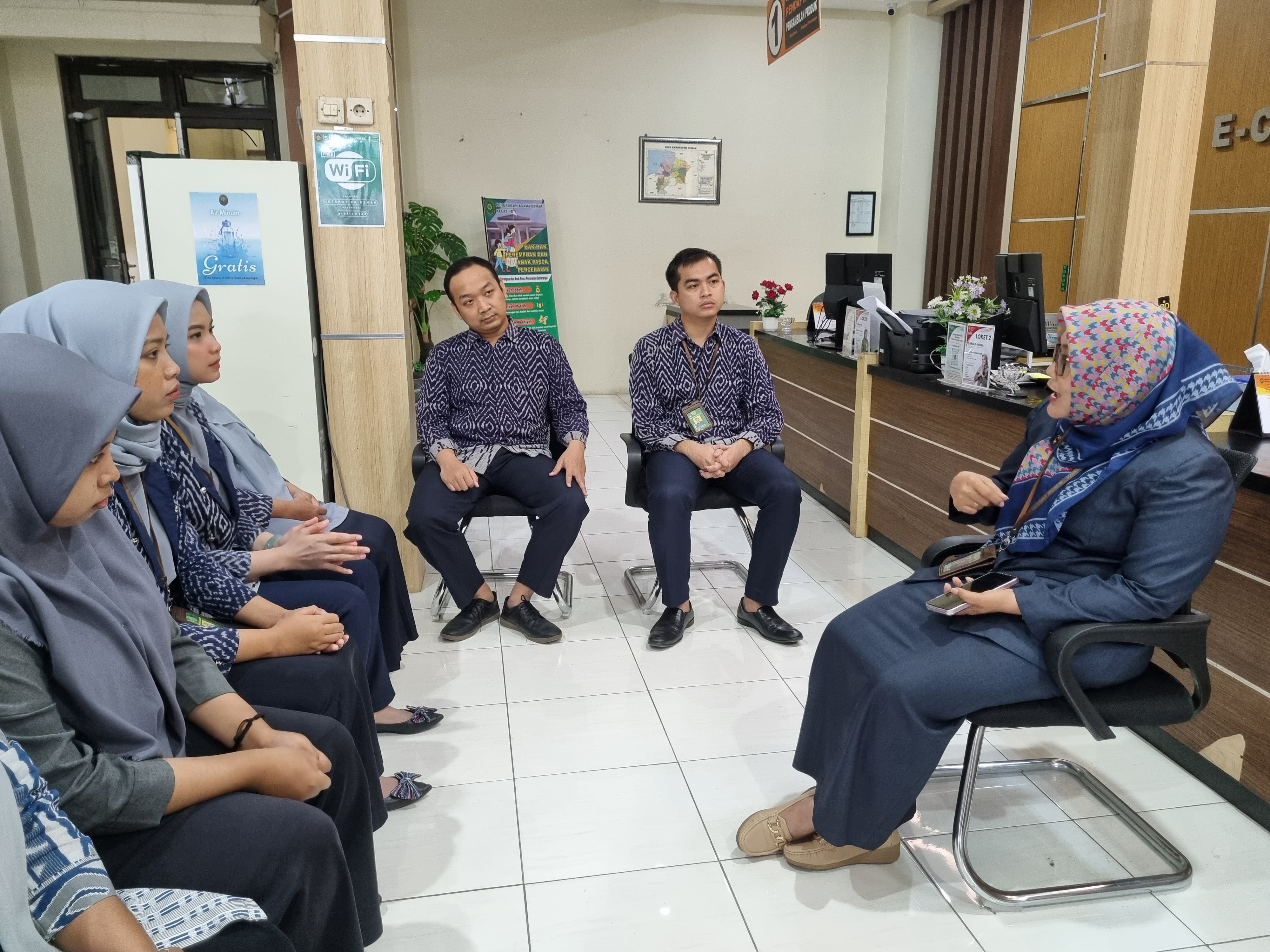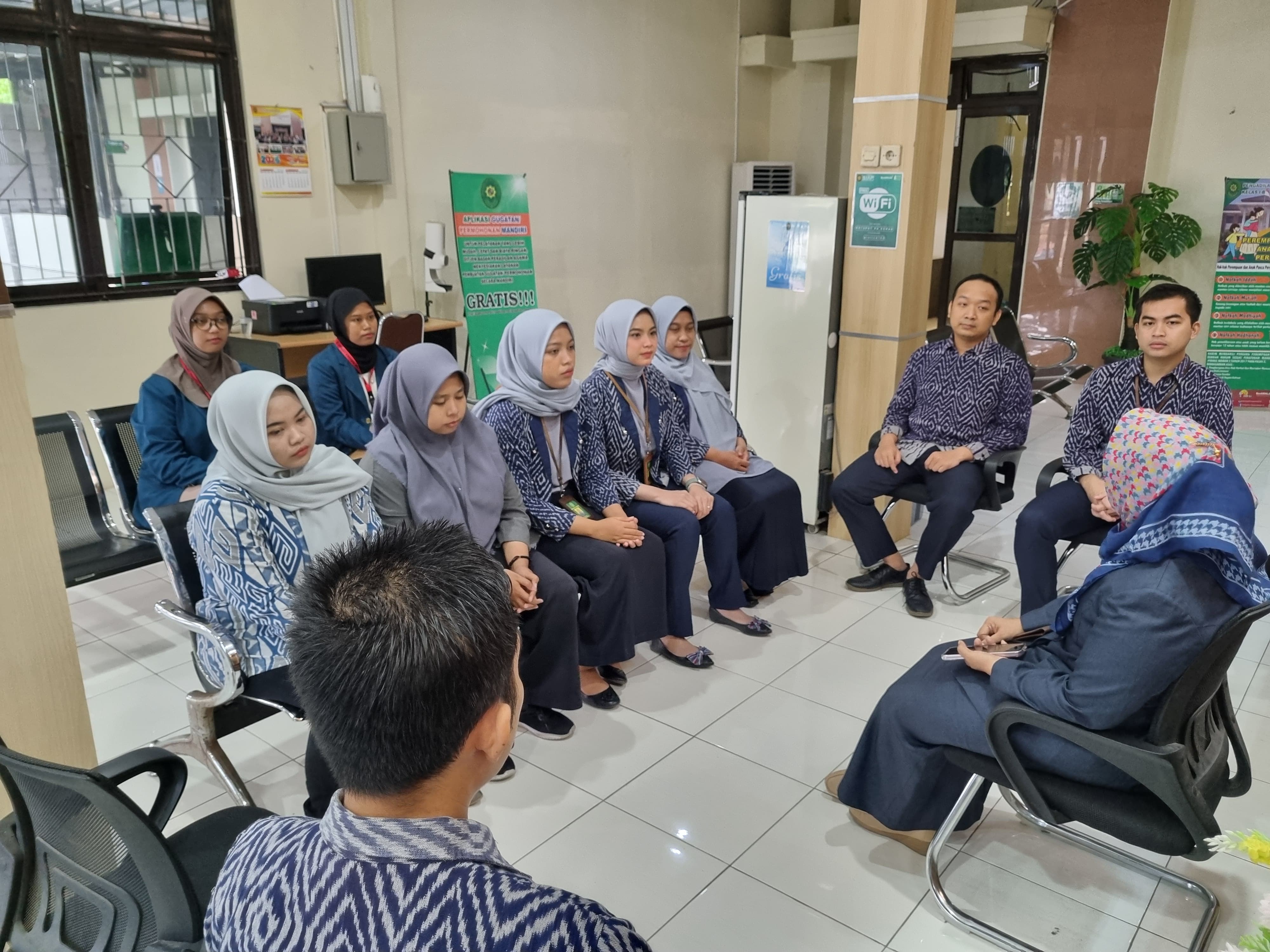 Pukul 07.45 WIB Sebelum aktivitas pelayanan kepada masyarakat, Panmud, PTSP dan Posbakum melaksanakan briefing rabu pagi di ruangan PTSP.